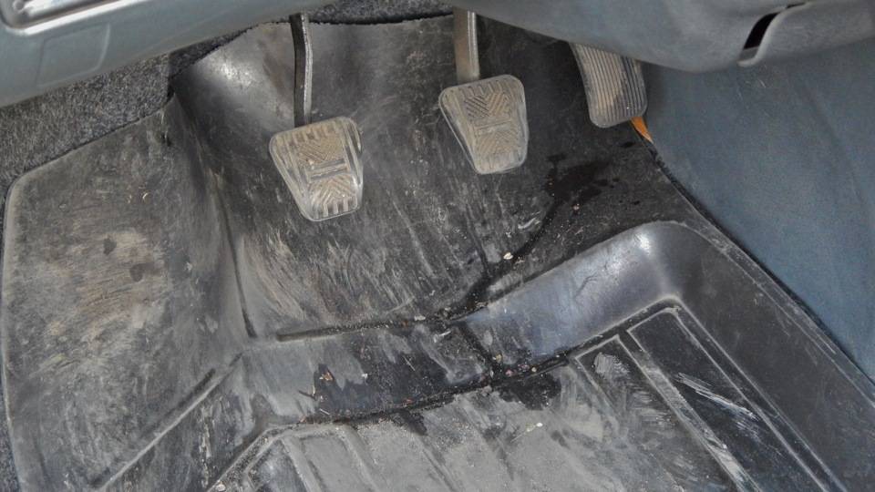 Жидкость на коврике из радиатора печки, задний торец которого находится сразу же за боковой панелью