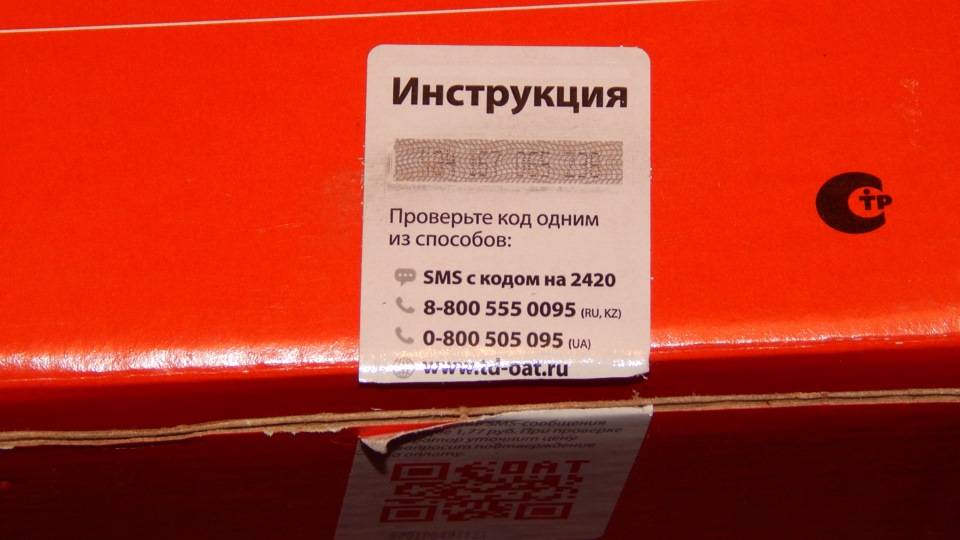 Голограмма, защищающая от подделки. Если код товара отправить по СМС, то придет ответ о наличии (или отсутствии) данного товара в реестре завода
