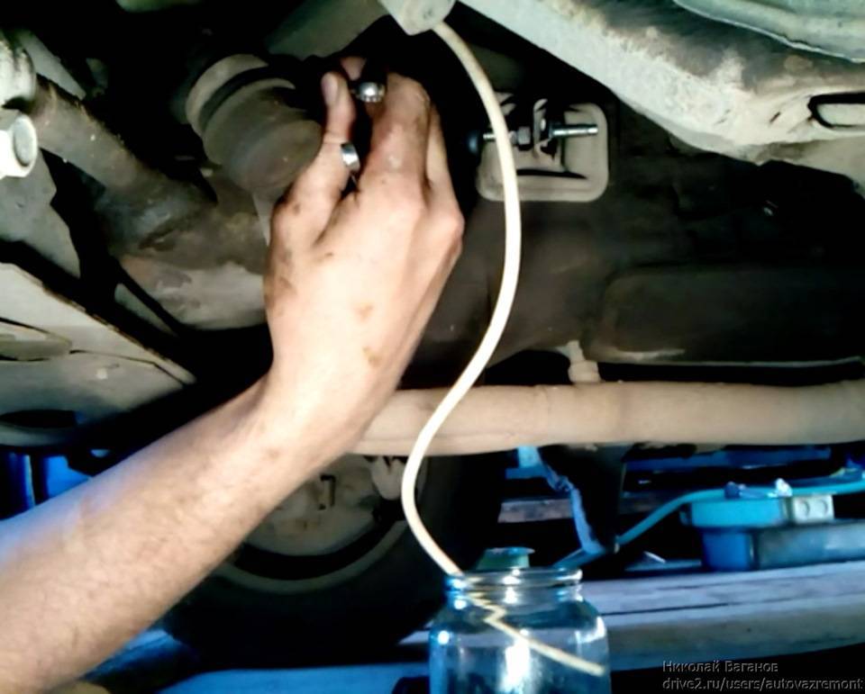 - подходящий шланг для прокачки, который плотно одевается на воздушный клапан, находящийся на рабочем цилиндре;
