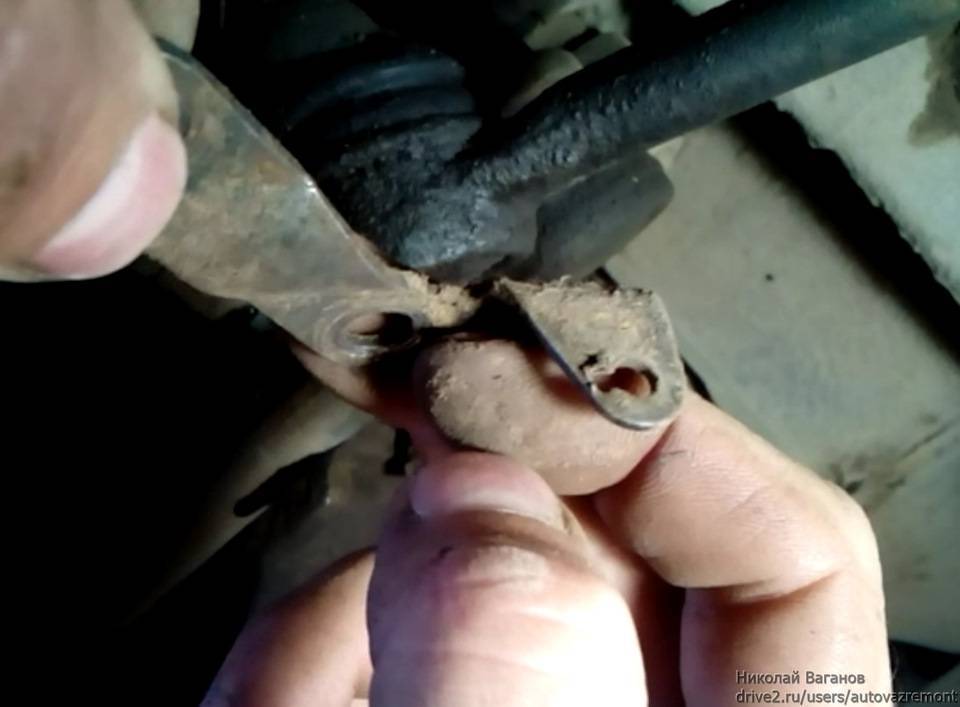 - Разогнуть и вынуть пассатижами шплинт на конце толкателя.