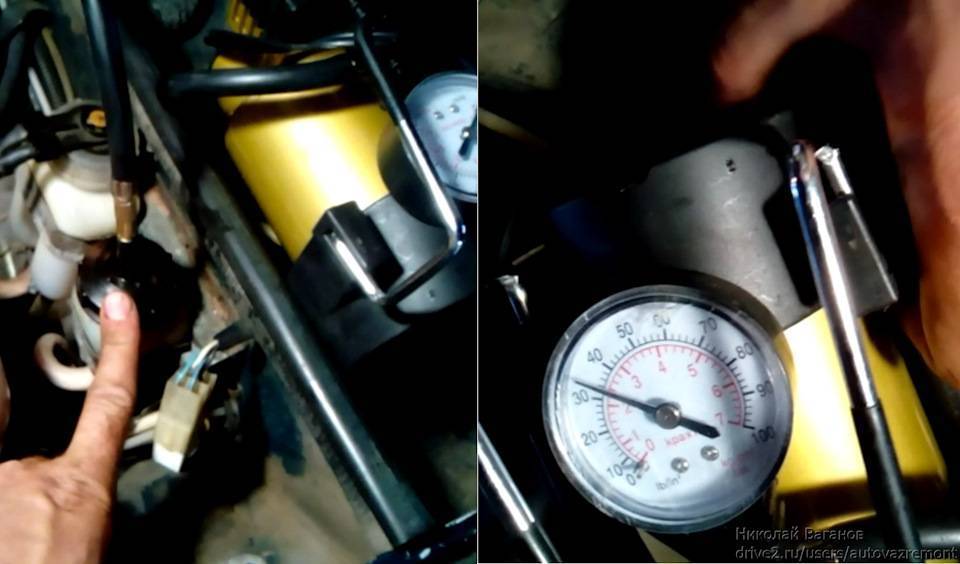 Есть и другой способ прокачки, более быстрый. Нужно создать давление внутри бачка сцепления — например, используя накаченную камеру от покрышки. В некоторых случаях, чтобы не возиться с камерой, достаточно дунуть через чистую марлевую тряпку в бачок.