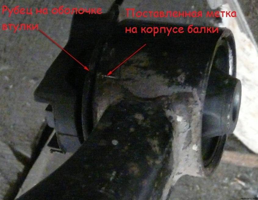 Самое сложное без ямы — берем вороток, головку на 14 или 17 и откручиваем болт, крепящий балку к кузову. Балка снята, пот ручьем Выпиваем кружку чая, делаем фото как стоят сайлентблоки в балке, но лучше взять книгу и посмотреть под каким примерно углом находится выступ сайленблоки относительно балки я нашкрябал на балке как стоял сайлентблок, но все равно маленько косо поставил, в рамках разрешенного После данных манипуляций лучше отнести балку в сервис и запрессовать, но если по каким-либо причинам вы не хотите или у вас нет замена сайлентблоков задней балки тойота королла туда нести, то ниже я опишу как менять сайлетблок.