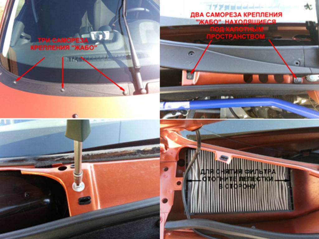 Следующий этап – изучить местоположение салонного фильтра. Находится он под жабо дворников, как на Lada Kalina и Chevrolet Niva.