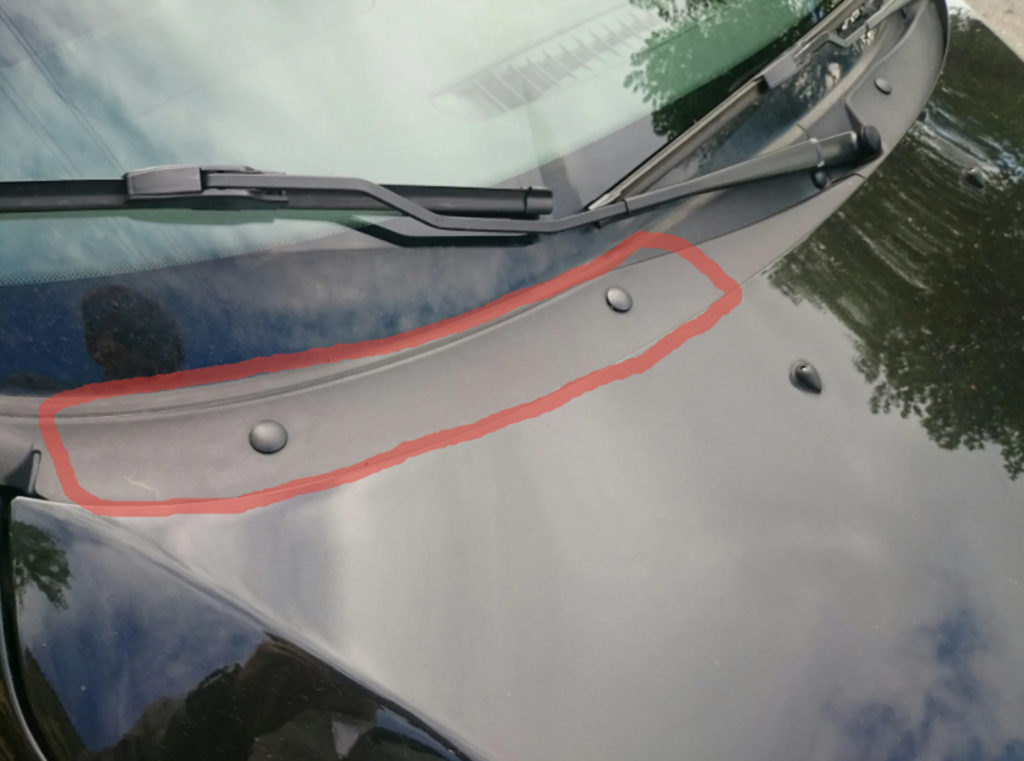 - Откройте капот и осмотрите пространство под ним. В районе лобового стекла вы можете увидеть пластиковый защитный кожух черного цвета.