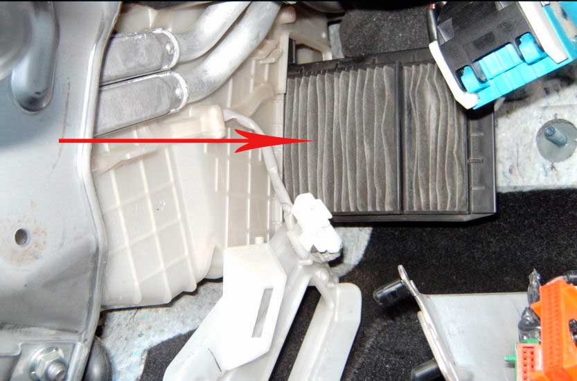 1. Фильтр находиться за консолью под торпедой со стороны пассажира.