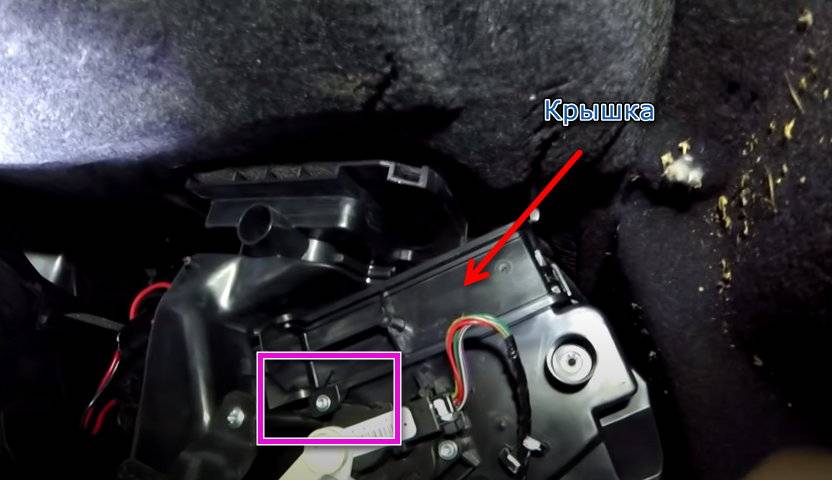 Справа от центральной консоли располагается пластиковая крышка, под которой и расположен фильтр