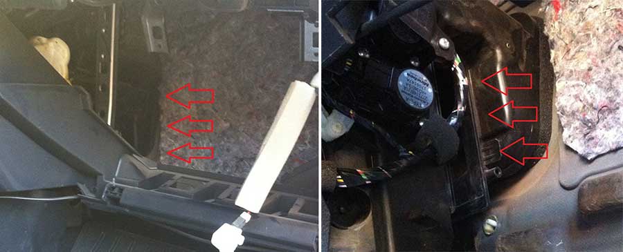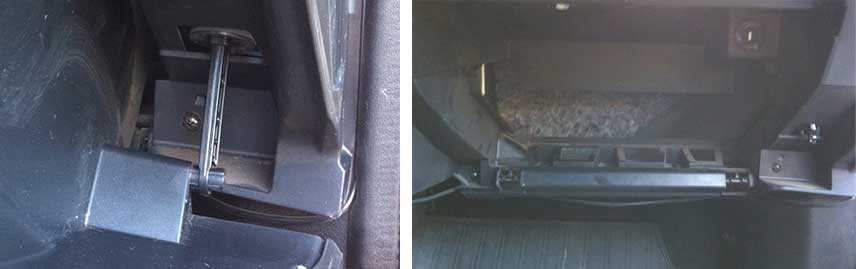 Теперь необходимо подлезть под бардачок и снять две скобы, которые его открывают.