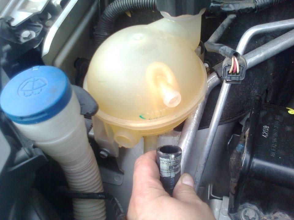 Началось всё с того, что начал понемногу уходить антифриз. Поиски течи дали только место куда выливался. В один прекрасный день на землю ушел весь бачек.