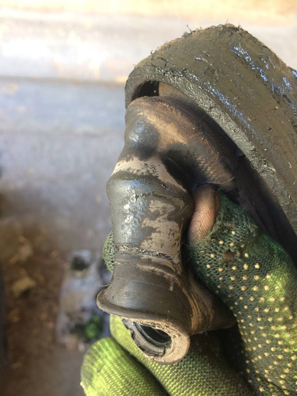- Первым делом новый пыльник надеваем на полуось, при этом могут возникнуть некие затруднения. Чтобы облегчить задачу, полуось можно промазать смазкой.