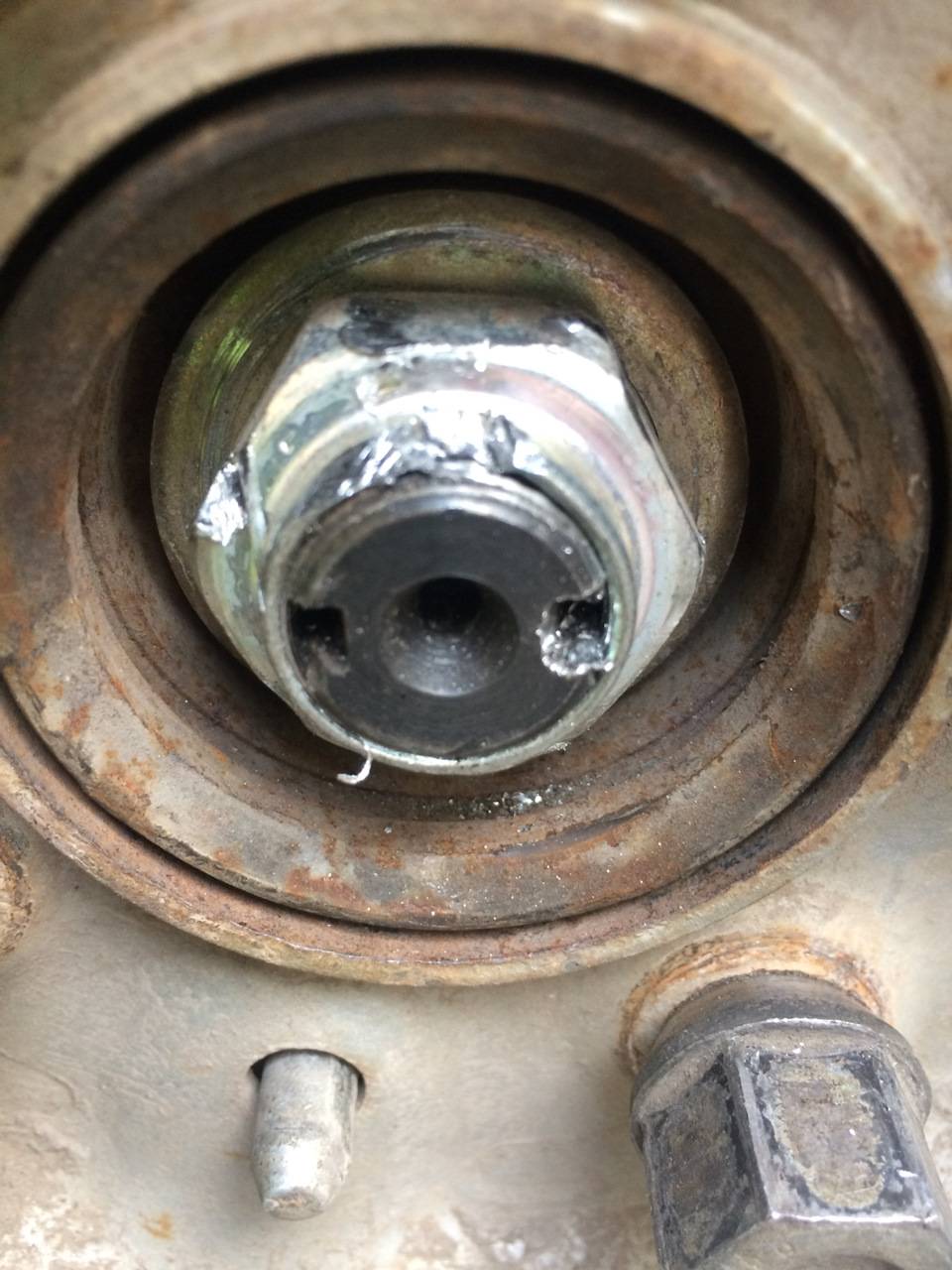 Бил зубилом и откручивал таким рычагом. На фото запаска.