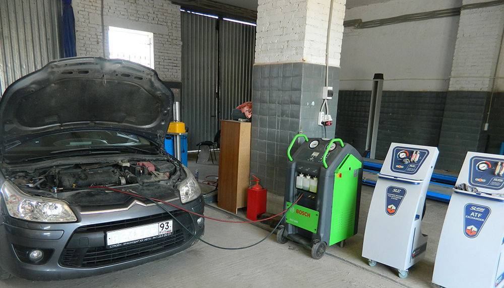 В автосервисе можно без особых хлопот провести все работы по обслуживанию и ремонту климатической системы. Там имеется все необходимое оборудование и опытный персонал. Заправка кондиционера в технических центрах обойдется в 1300 рублей и выше.